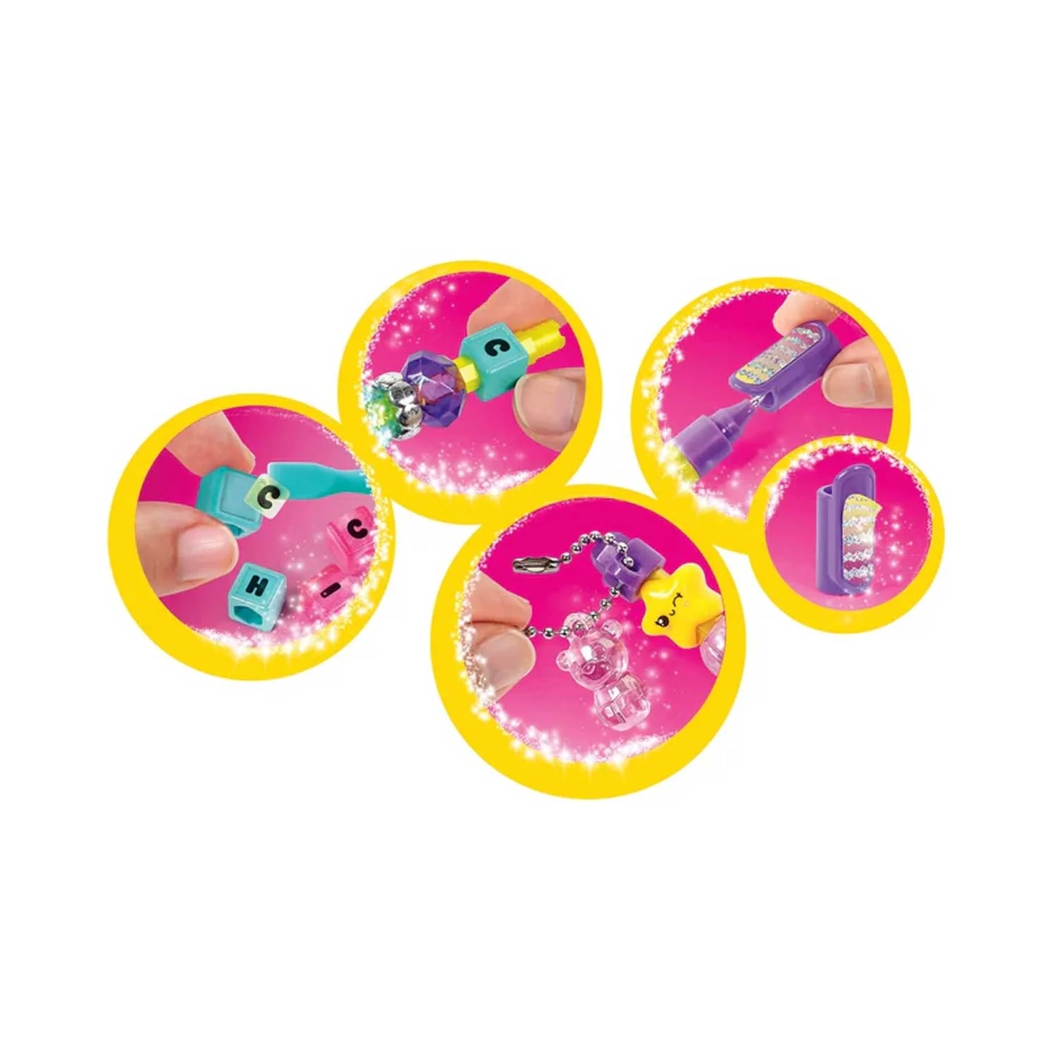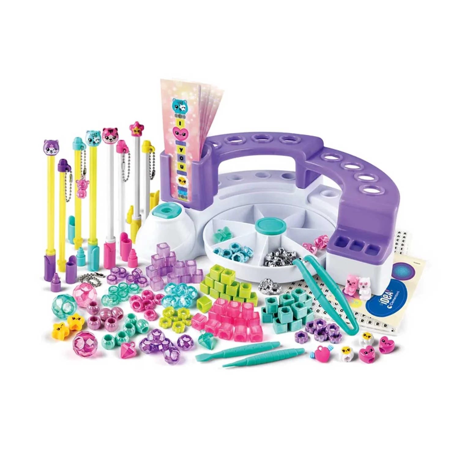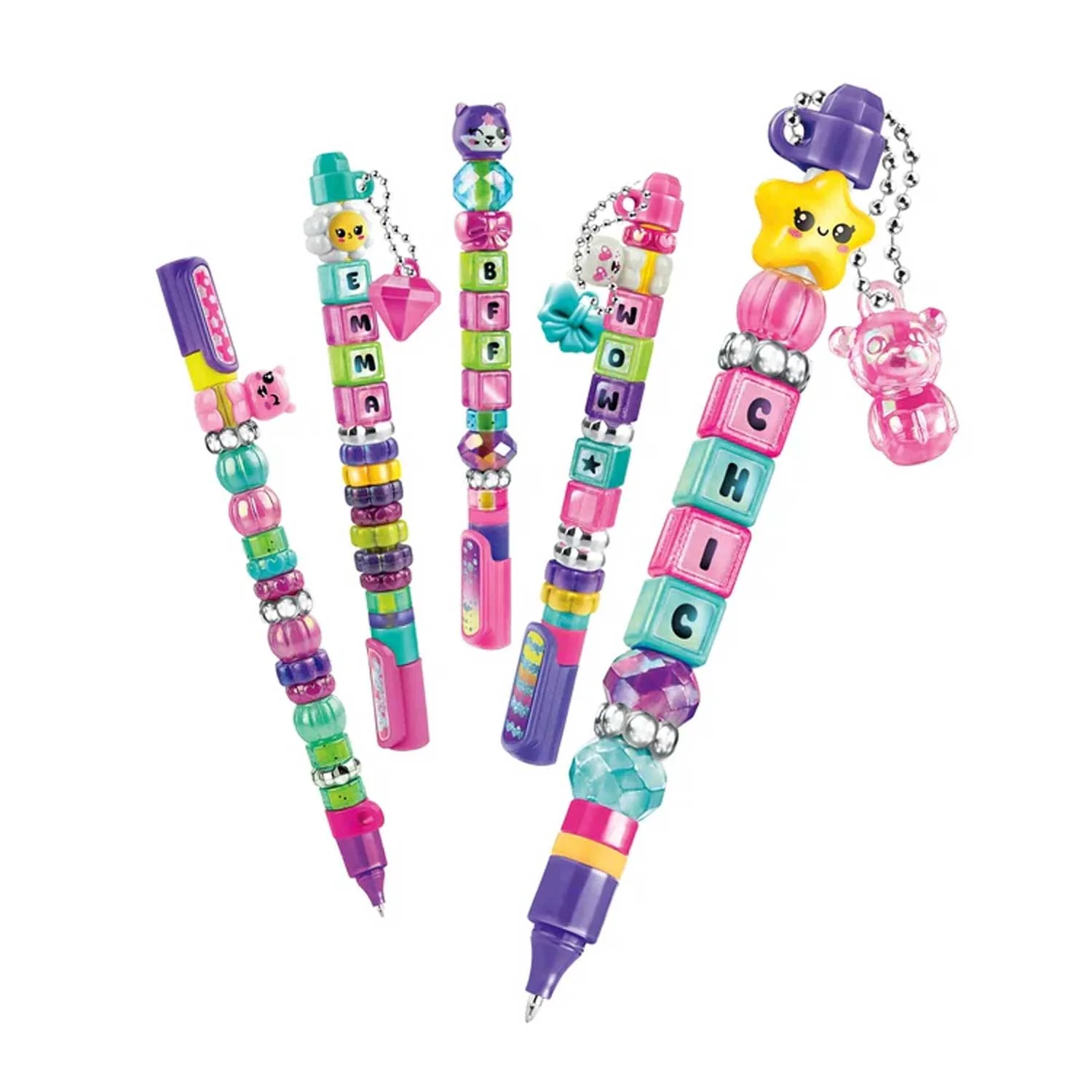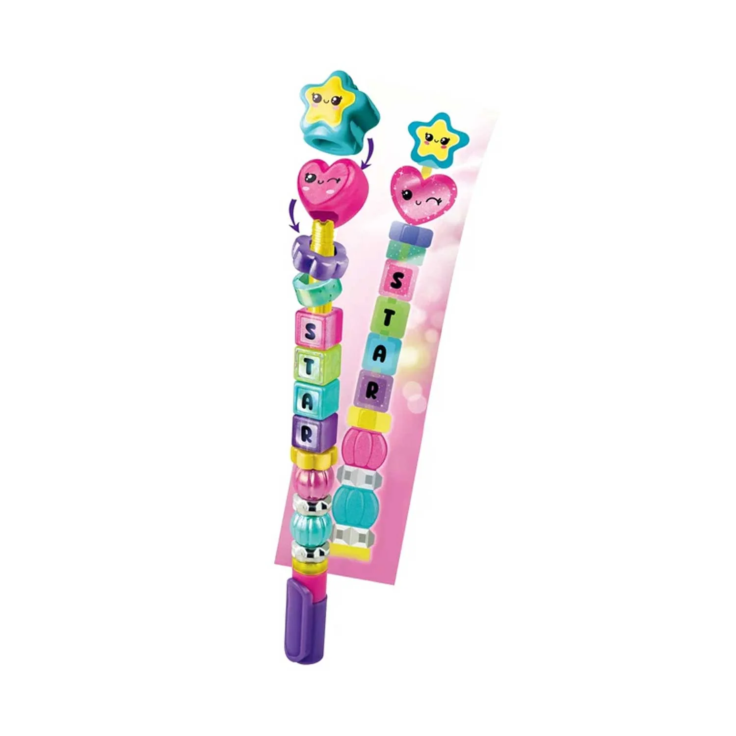 - Il set permette di personalizzare tantissime penne con lettere, perline, adesivi, charms e simpatici personaggi grazie agli appositi strumenti.