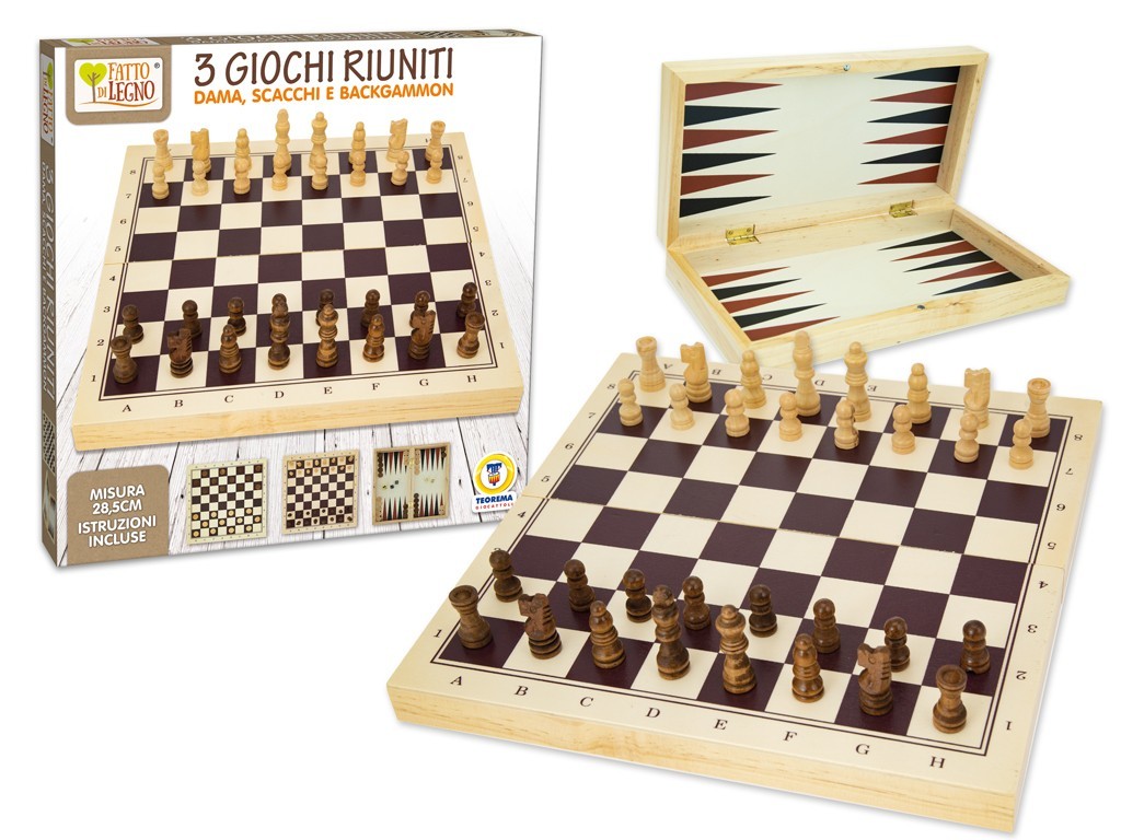 FATTO DI LEGNO GIOCO 3 IN 1 DAMA SCACCHI