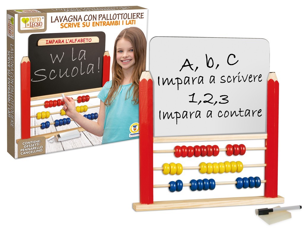 Lavagna 2 in 1 con pallottoliere fatto di legno età consigliata +3anni