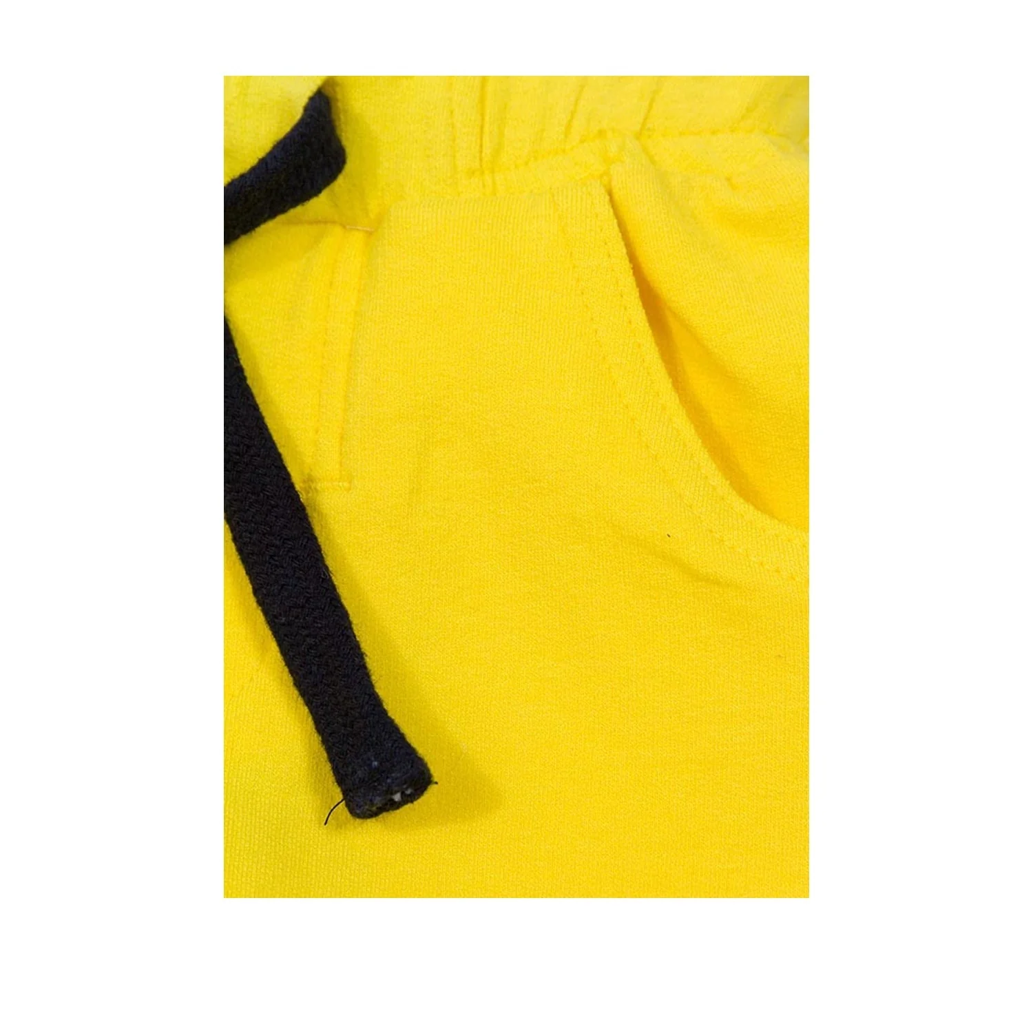 Bermuda Gialli in felpa per baby bambino. Con tasche funzionali sia nella parte anteriore che in quella posteriore e vita elastica con laccetto.