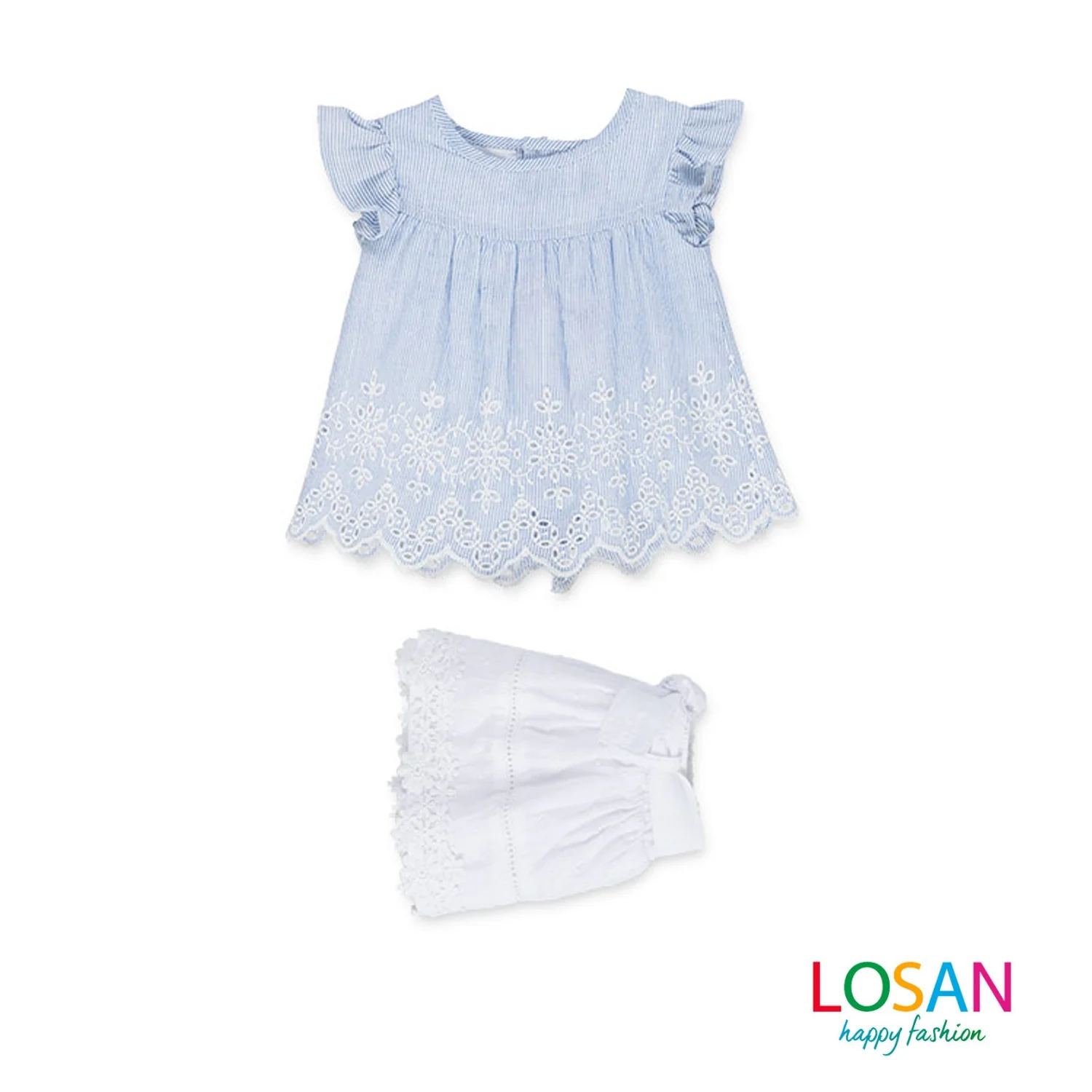 Losan – Completo Blusa e Gonna in Pizzo Sangallo Baby Bambina