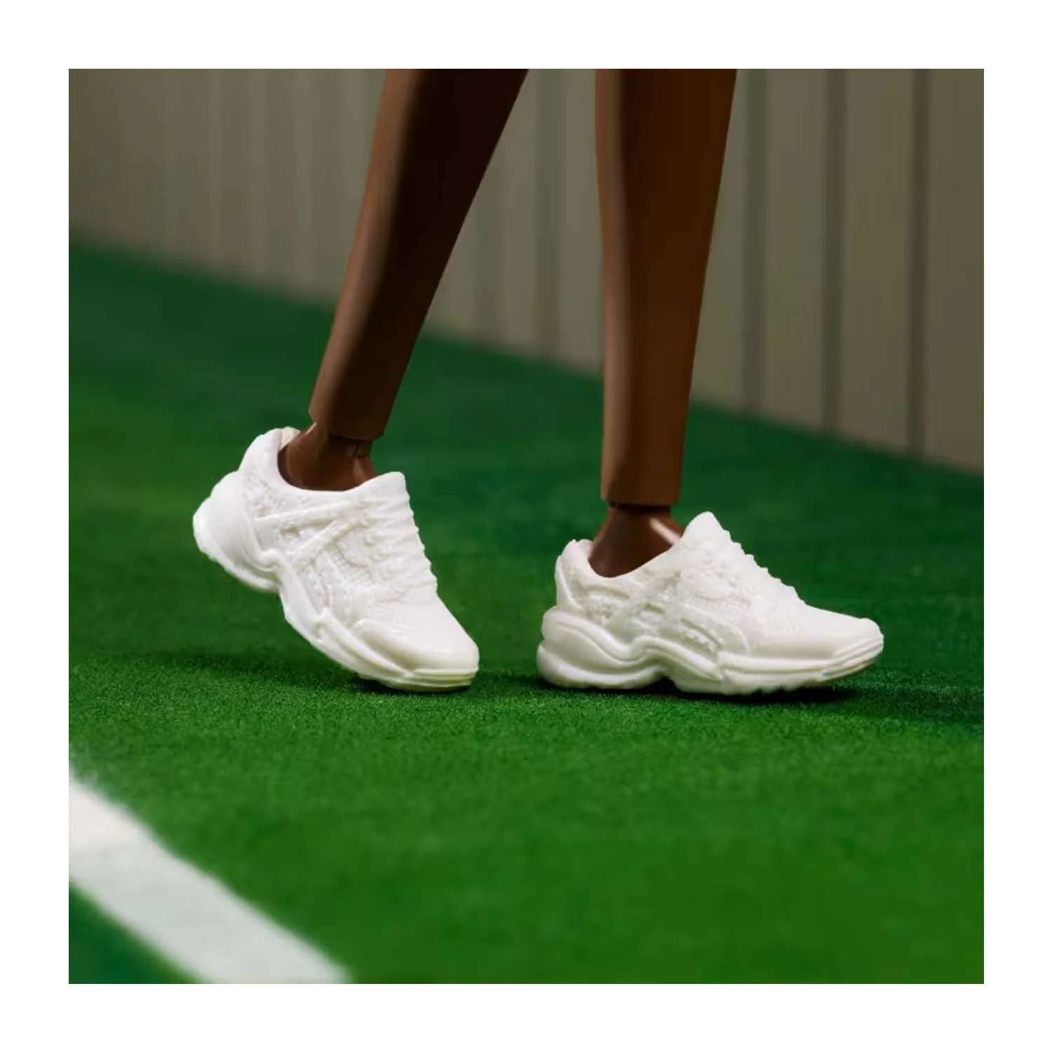 • La bambola Venus Williams di Barbie indossa l’uniforme da tennis, che include top, shorts, visiera e sneaker.