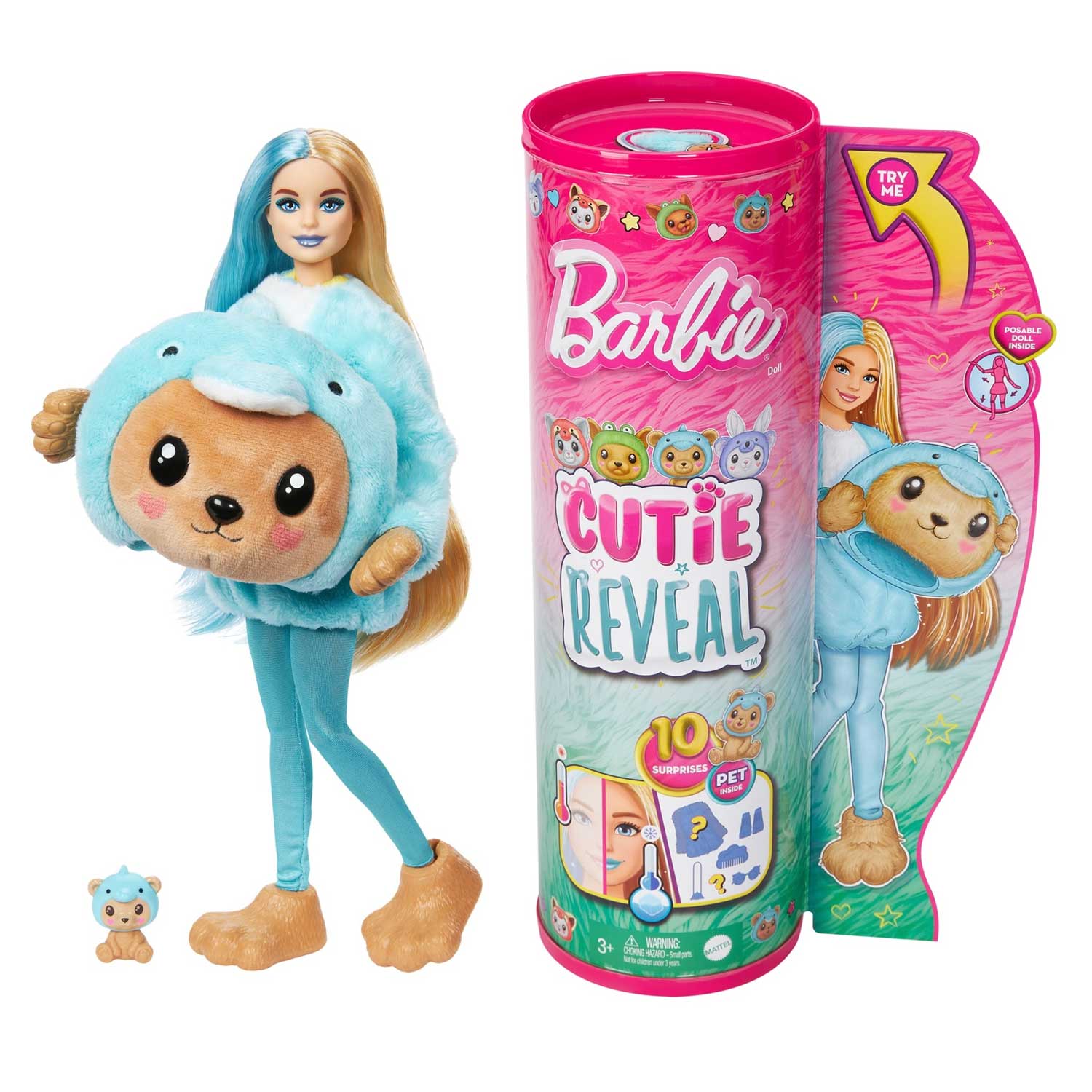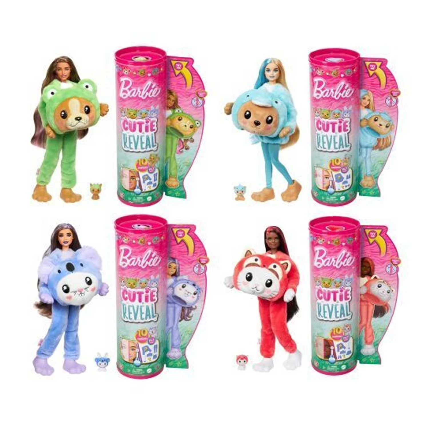 Con 10 sorprese in 1 confezione, le bambole della serie Barbie Cutie Reveal a tema costume offrono una fantastica esperienza quando apri la scatola, tra morbidi amici di peluche, accessori alla moda e divertenti trasformazioni!