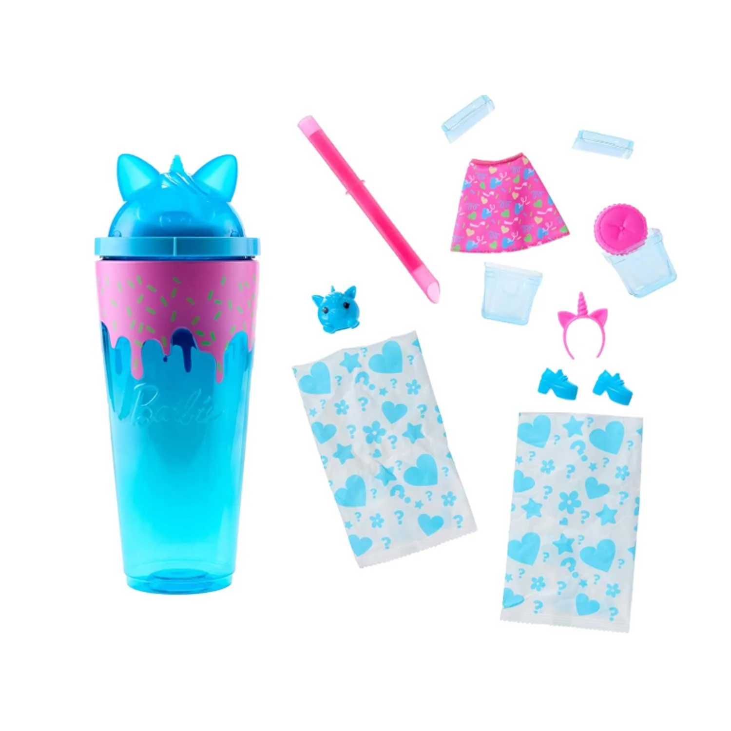 - Apri la confezione rimuovendo la pellicola sul bicchiere per rivelare una bambola Barbie che profuma di frullato! Quale bambola troverai? Un tenero unicorno, un simpatico gattino o un luminoso coniglietto?