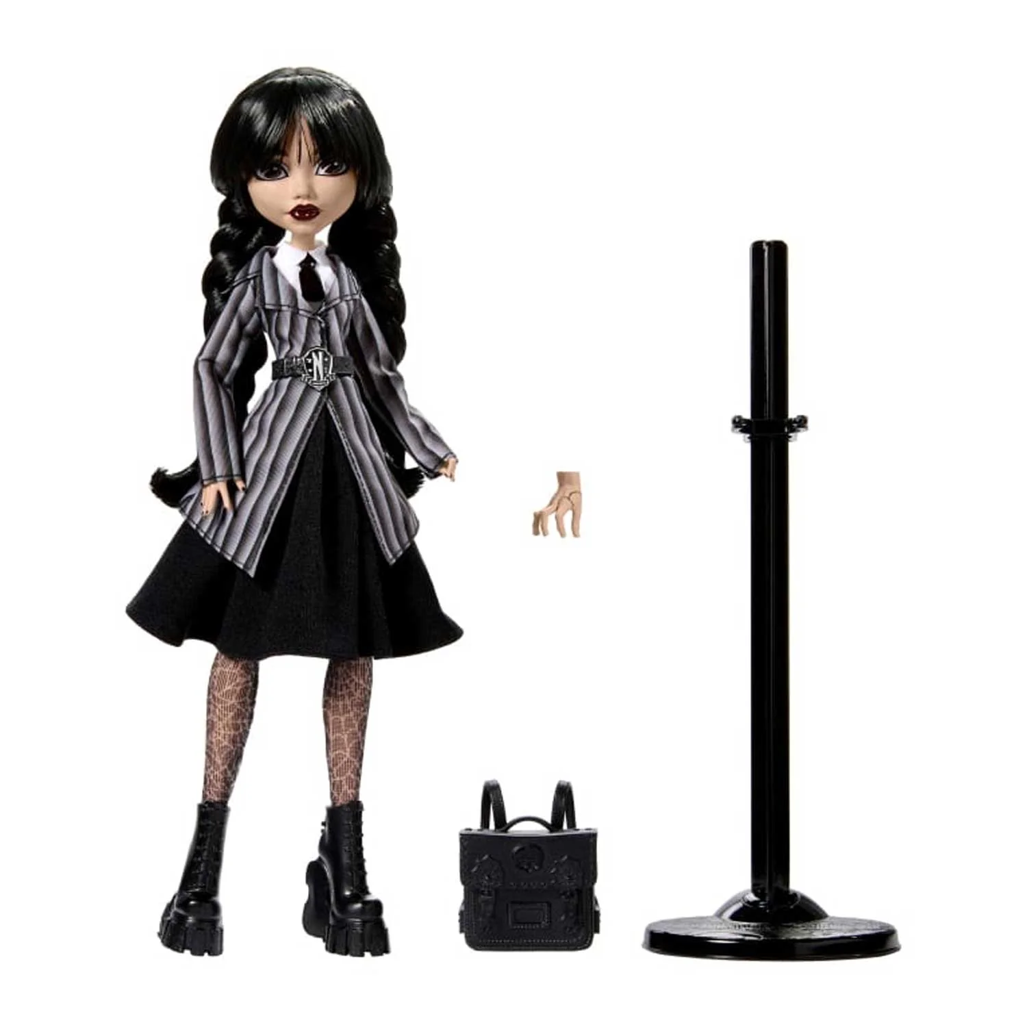 1 bambola Mercoledì Addams, 1 zaino, 1 Mano e 1 piedistallo per bambola.