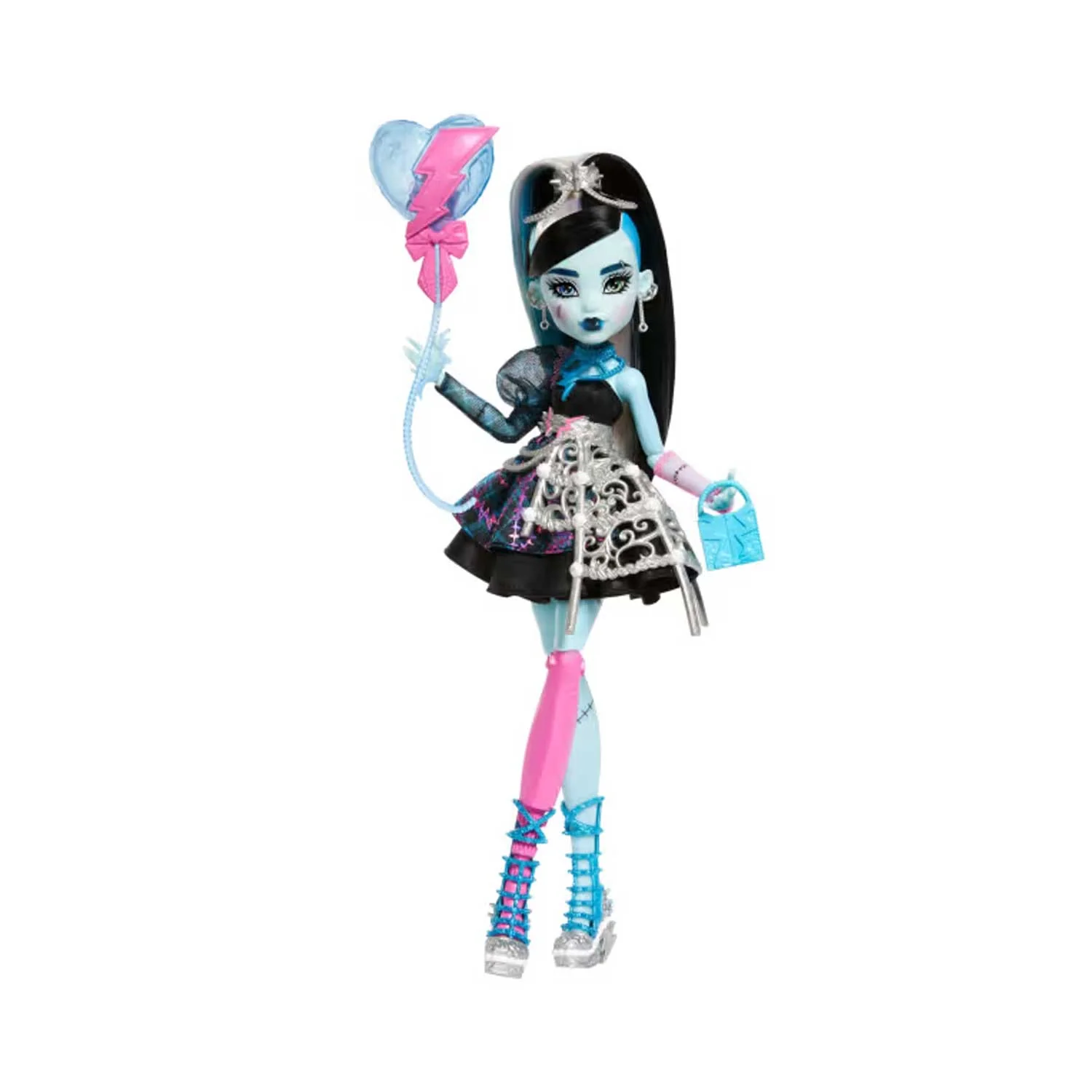 - Con pezzi di stile come il rossetto blu e la borsetta, i bambini e i collezionisti si divertiranno un mondo ad aiutare la bambola Frankie Stein a prepararsi per il party!