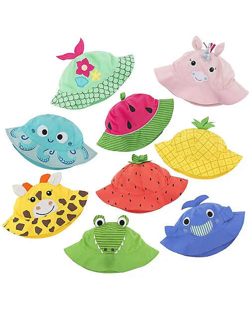 I coloratissimi cappellini estivi di Zoocchini difendono il tuo bambino dai raggi solari grazie alla speciale protezione upf 50.